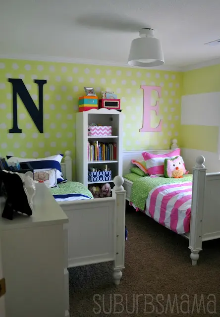 Plecand de la gusturile lor si de la directiile in care vrei sa ii indrumi, trebuie sa alegi cu atentie culorile si sa incerci sa delimitezi cat mai bine spatiul copiilor tai, deoarece fiecare va avea simtul proprietatii si a spatiului sau, dar in acelasi timp, trebuie sa lasi o zona destul de mare in care acestia sa stea sa se joace impreuna si sa interactioneze.