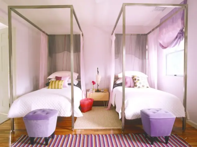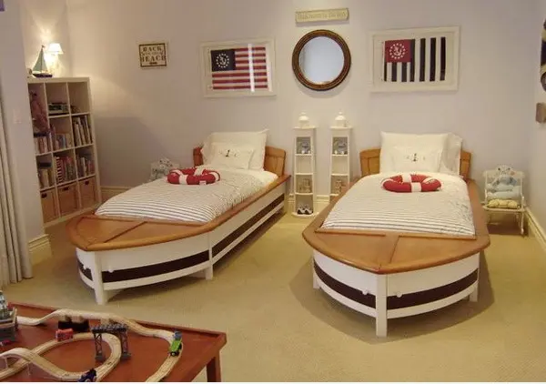 In situatia in care nu vrei sa optezi pentru paturi supraetajate, trebuie sa alegi o camera destul de mare pentru a putea pozitiona doua paturi, de dimensiuni egale si initial decorate la fel, dupa care, fiecare isi va pune amprenta asupra paturlui si a zonei sale din camera, in functie de pasiunile, ocupatiile si gusturile lor.