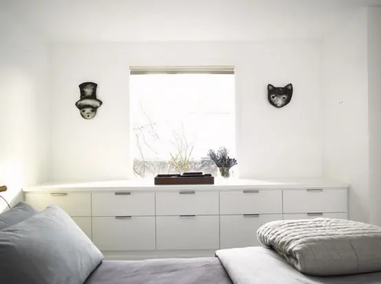 Una din variantele propuse este integrarea dulapurilor in jurul ferestrei. Puteti aseza dulapurile de o parte si de cealalta a ferestrei. Acest tip de aranjament poate fi pus in practica in cazul in care mai exista inca o fereastra in respectiva incapere. Dulapurile vor prelua o parte din lumina, de aceea camera va risca sa fie prea intunecata.