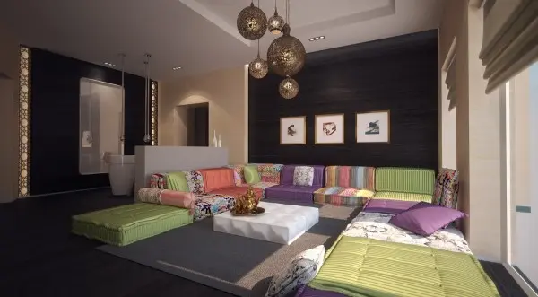 Culorile si contrastele impresionante merg mana in mana in designul inspirat din stilul marocan, pe cand arcurile si boltile se pot integra in casa ta in living sau in hol ca forma de exprimare artistica. Textilele precum si covoare puternic colorate sunt caracteristici care aduc influente marocane tranformand un apartament din banal in unul cu veritabile trasaturi culturale.