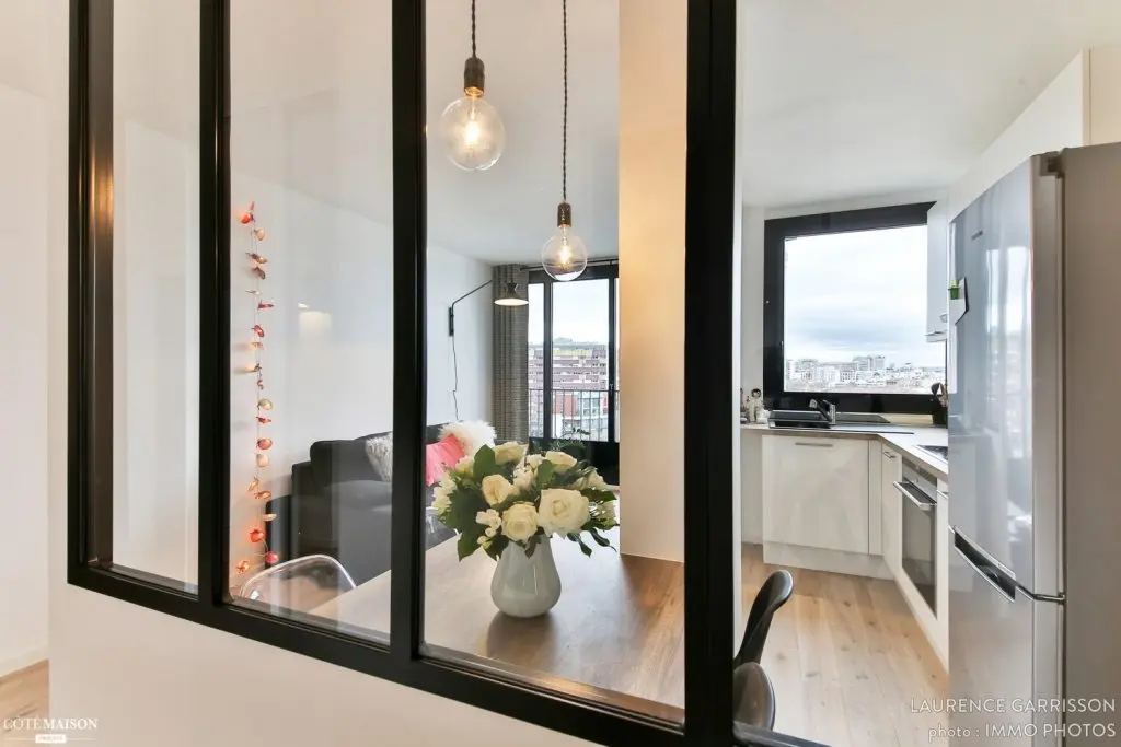 Designerul s-a folosit de geamuri sau, mai bine zis, de niste ferestre interioare care dau foarte bine in decor, ocupand o suprafata foarte mica la nivelul podelei.