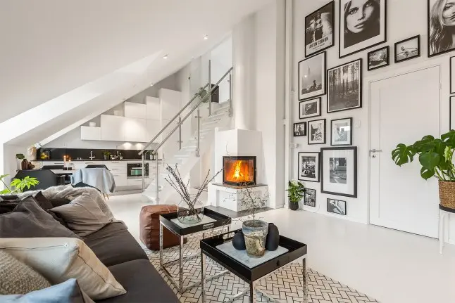 Schema monocromatica alb-negru intr-un decor pur scandinav
