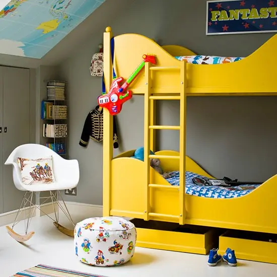 Camera copiilor un spatiu creativ cu gri si galben