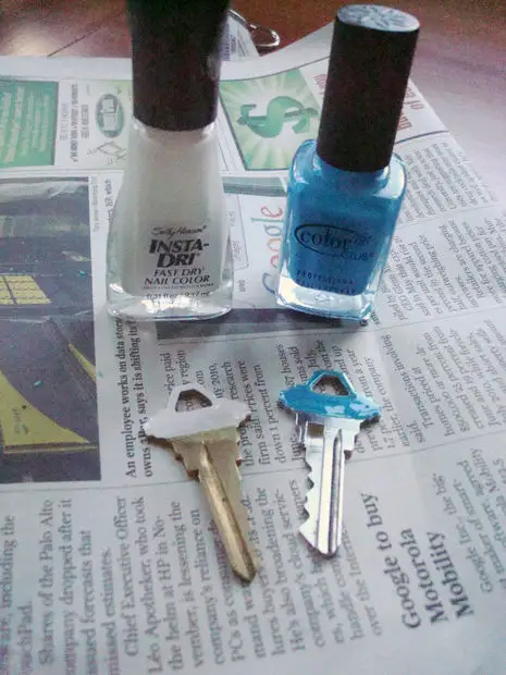 Si cu aceasta situatie sunteti familiari, mai mult ca sigur: aveti un manunchi de chei si niciodata nu nimeriti cheia potrivita din prima. Coloreaza-le cu diferite nuante de lac, astfel incat sa le poti identifica mai usor.