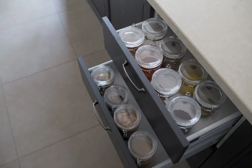 Si in ce priveste depozitarea putem fi la fel de creativi. Recipiente metalice, de sticla combinate cu lemn sau recipiente transparente pentru paste sau zahar, seturi pentru condimente, iata doar cateva idei prin care putem reda o nota distinsa unui aspect atat de banal precum depozitarea.