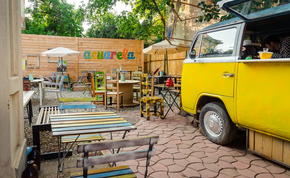 Ideea de spatiu viu, in permanenta schimbare este un aspect foarte important din pozitionarea Acuarelei. In plus, Acuarela presupune si un kit mobil de eveniment compus din 3 automobile din anii 60-70 si o rulota retro cu care am participat la mai multe evenimente anul trecut. Bugetul estimativ pentru achiziția lor si a mobilierului de eveniment a fost de ap