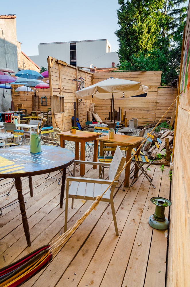 Am facut un mix intre obiecte de mobilier din zestrea familiei cu mobila veche reciclata din fostul hostel Counting Crows, piese de mobilier de la expozitia Ebenist Maler organizata de Andrei Argaetic de Noaptea Alba a Galeriilor 2011 si diverse obiecte salvate din uzine si ateliere parasite sau demolate.O parte din scaune sunt achizionate din Sighetul Marmatiei si o alta este reciclata cu ajutorul amicilor de la atelierul Woodyo si pictate patinat pentru a se incadra in decor. Altele sunt noi si au vopsite in cadrul unui proiect de mobilizare a prietenilor: Friendly painting, unde fiecare are propriul scaun vopsit la Acuarela.Cred ca cea mai mare provocare a amenajarii a fost iarna. Am depozitat foarte multe lucruri in curte, iar operatiunea nu a fost deloc usoara. O alta problema au fost limitarile contractuale stabilite de proprietarii imobilului; nu am putut modifica anumite portiuni si finisaje, cum ar fi tâmplaria, podeaua din gresie lucioasa, scara de acces la mansarda.Investitia initiala in Acuarela a fost de 25000 de euro in prima faza a amenajarilor (toamna-iarna 2012), urmata de inca 12000 de euro in primavara, atunci cand am achizitionat bus-barul si am construit scenele si compartimentarea spatiilor.