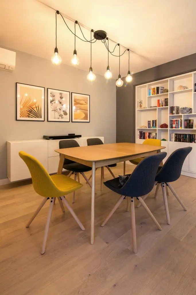 Conceptul amenajarii a avut la baza preferintele beneficiarilor: un design minimalist, scandinav, culori deschise si folosirea unor materiale naturale. Astfel, a fost aleasa o paleta cromatica neutra, predomina nuantele de gri pe care se evidentiaza accentele puternice de galben-intens.