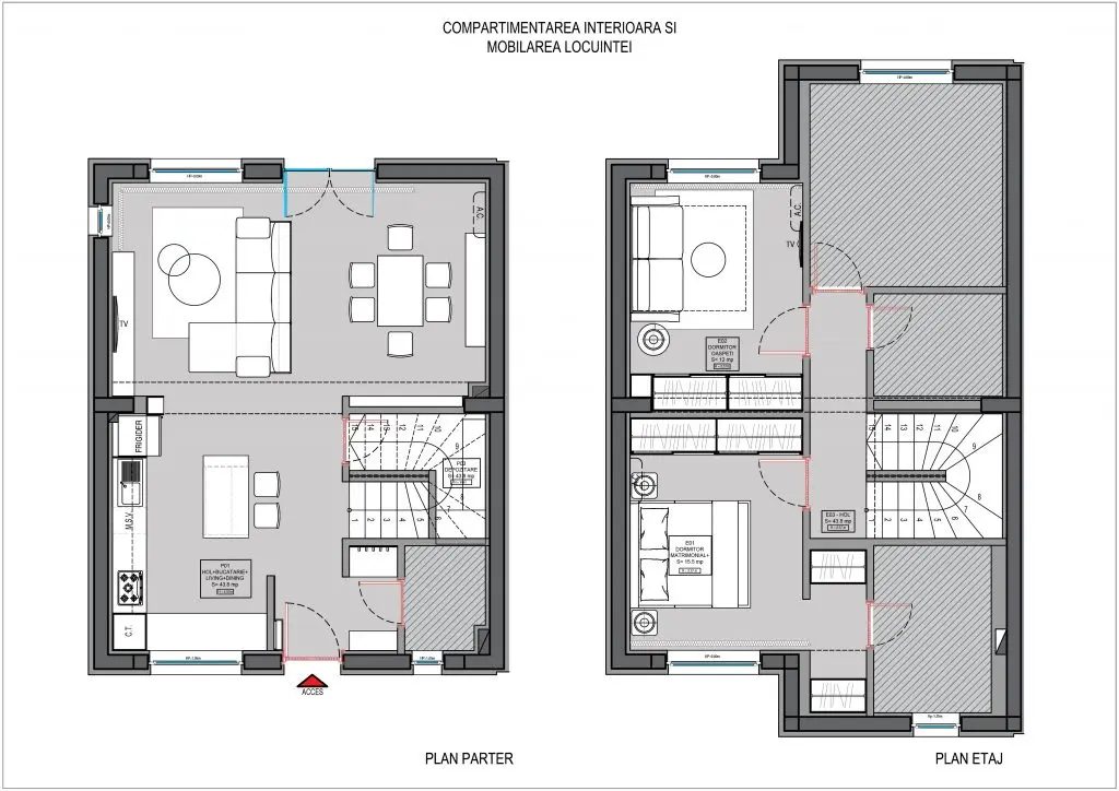 Deschide GaleriaCu o investitie de 22000 de euro in finisaje si mobilier, locuinta dispusa pe doua nivele, a fost finalizata in 2020 sub atenta coordonare a echipei Next Interior. Acestia au amenajat open space-ul de la parter si dormitorul matrmonial situat la etaj, restul spatiilor urmand a fi amenajate in curand.