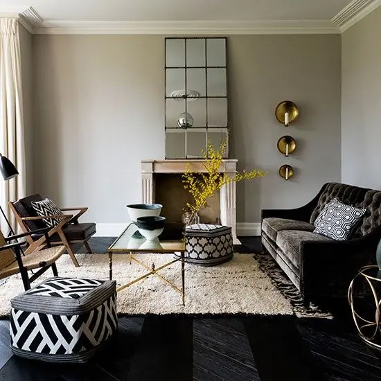 Pentru eleganta, o idee buna este sa optati pentru o podea neagra, pereti intr-o nuanta pala de vernil, si mobilier alb cu mici accente de negru ici-colo, fara a insista. Daca nu va doriti totusi o podea neagra, atunci alegeti un punct de interes al casei, de exemplu scara, ca unic element inchis intr-un interior alb sau pastel. Atentie totusi, nu orice nuanta pastelata arata bine langa negru.