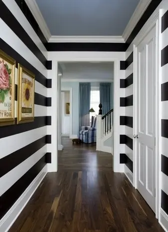 Dungile sunt la mare cautare. Se pare ca au revenit dungile in designul interior. In ciuda efectului de „zebra” un perete varuit in dungi albe si negre arata bine, este modern si se potriveste spatiilor mici. Dungile orizontale de-a lungul unui hol ingust si scurt iti vor da iluzia unui spatiu mai deschis si mai mare decat in realitate.