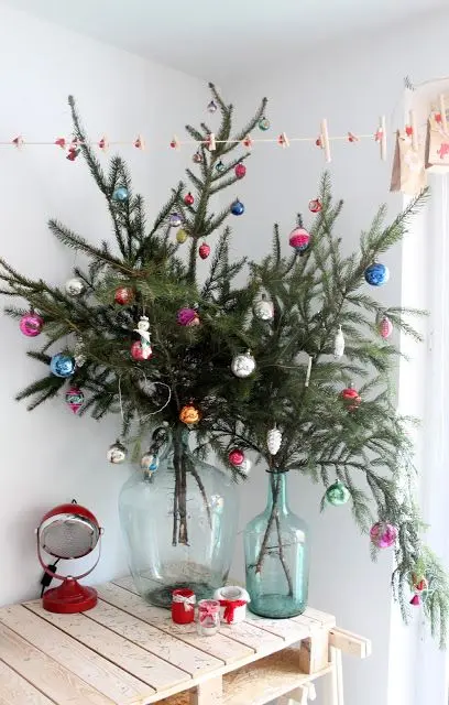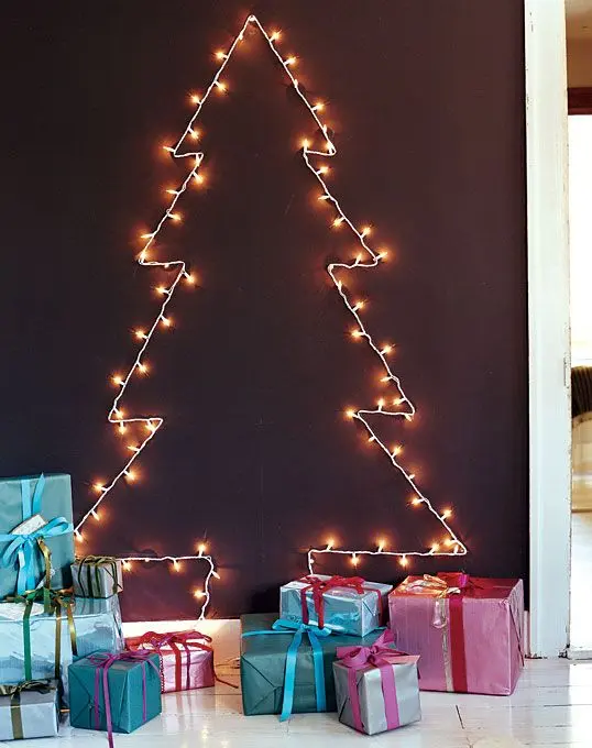 Folositi diferite texturi si culori pentru a scoate in evidenta decorul festiv. Daca spatiul nu va permite amplasarea unui brad, faceti unul pe masura, mic care sa poata sta pe o masuta. Abordati situatia intr-o maniera originala: creati un bradut din luminite sau din globulete.