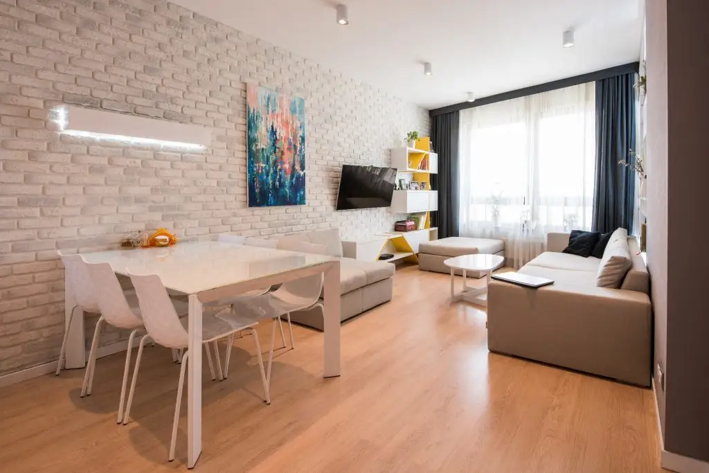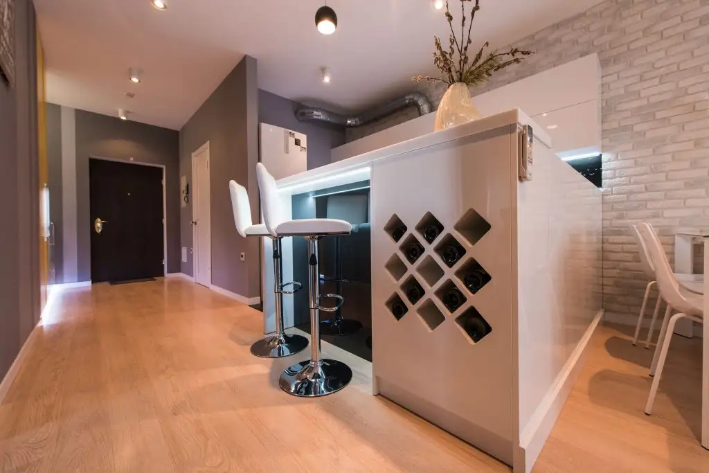 O atentie deosebita a fost acordata corpurilor de iluminat. Benzile LED aplicate, alaturi de lampile suspendate si spoturile aplicate pe tavan pun in evidenta fiecare colt al livingului si al bucatariei.
