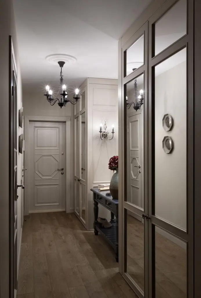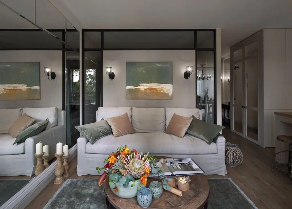 Desi camerele au fost restranse, au fost gasite solutii practice prin care spatiile sa para mai mari. Una din acestea a fost placarea unui intreg perete cu oglinzi. De cealalta parte, peretele-partitie care separa dormitorul de living, include si o parte de geam fumuriu pentru a permite luminii naturale sa patrunda si in interiorul dormitorului.
