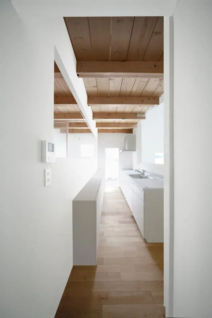 Casa in forma de cutie pe interior, vedere din bucatarie