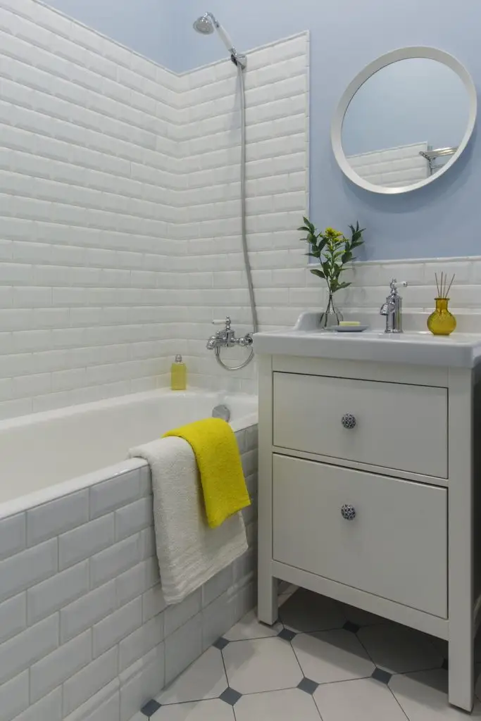 Model rotund de oglinda sprijinit de lavoar