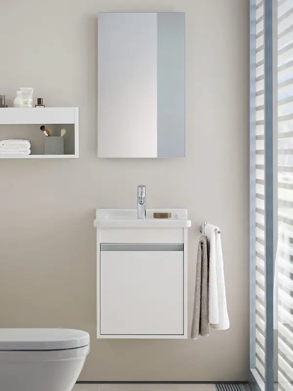 Intr-un spatiu mic, se poate opta pentru o oglinda cu benzi de lumina laterale, integrate in structura.