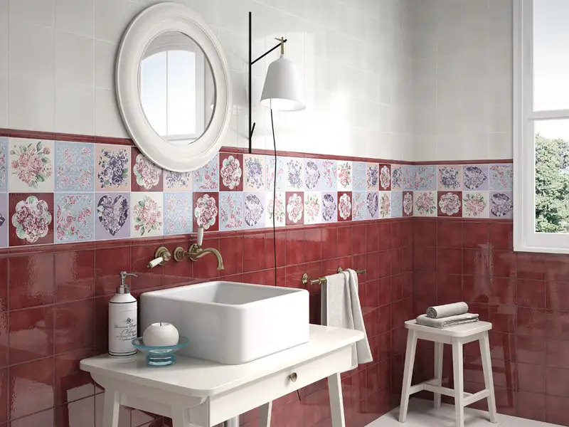Model de lavoar cu finisaj rosu, acelasi finisaj regasindu-se si in rama oglinzii