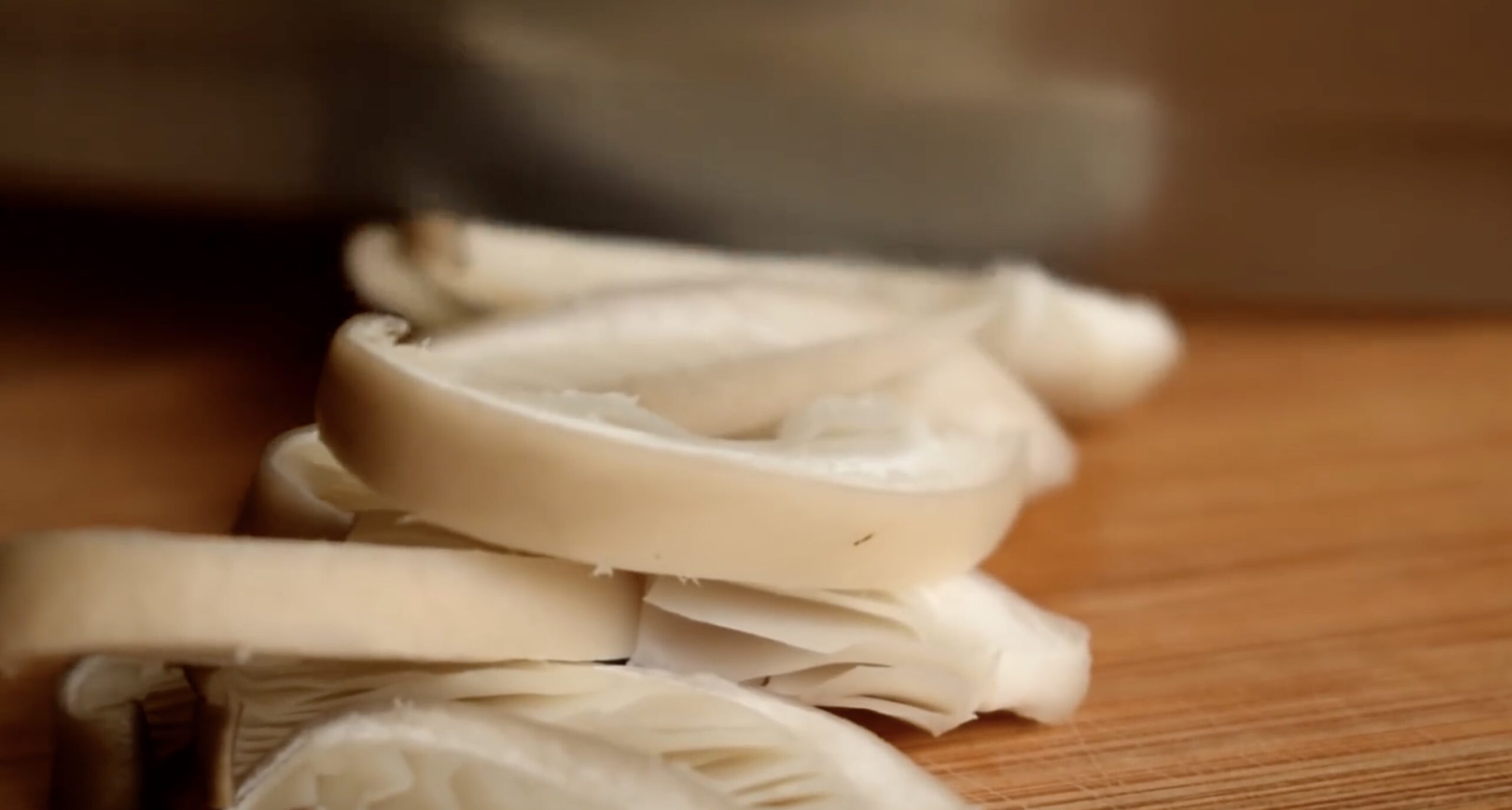 Textură & aromă: Pleurotus-ul, tăiat fâșii, aduce senzația de „burtă”, iar crema de caju oferă consistența bogată și fină.