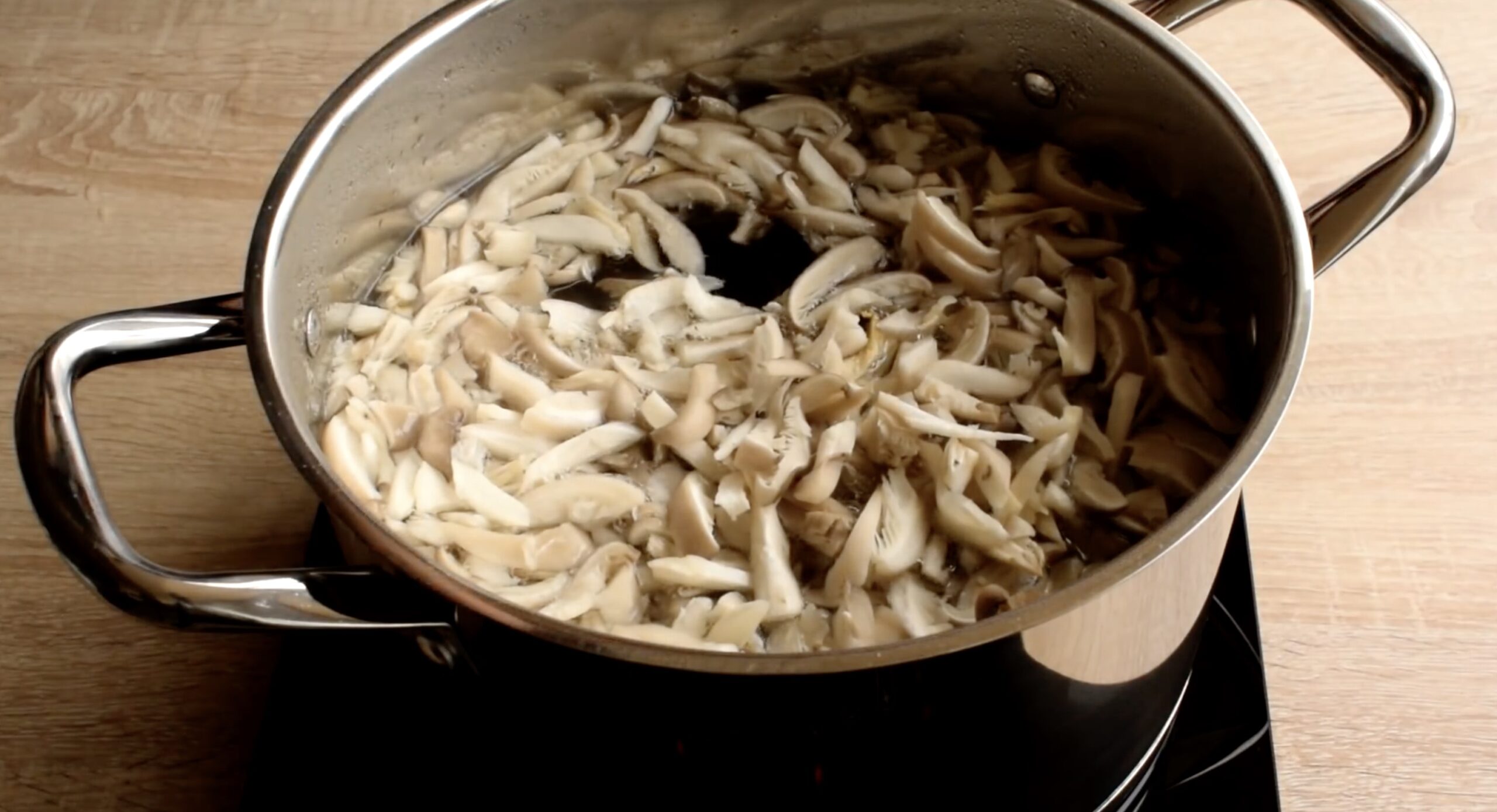 400–500 g ciuperci pleurotus, tăiate fâșii subțiri