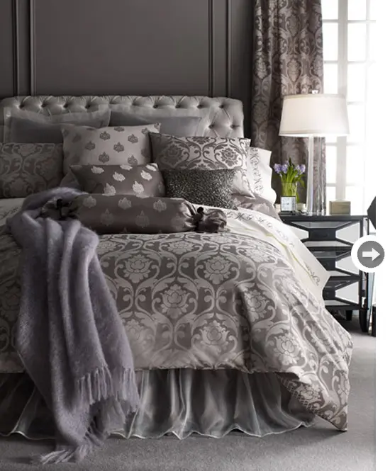 Lenjeria de pat. Daca nu sunteti decisi ca vreti sa pastrati griul in amenajare atunci incercati s ail introduceti treptat si vedeti cum va obisnuiti cu el. Puteti incepe cu lenjera de pat. Sursa: styleathome.com
