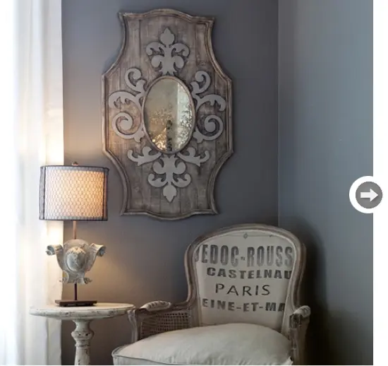 Oglinda din lemn Aidan Gray. Griul poate fi folosit si in cazul accesoriilor. De pilda, aceasta oglinda de inspiratie franceza este perfecta pentru un interior romantic sau clasic. Sursa: styleathome.com