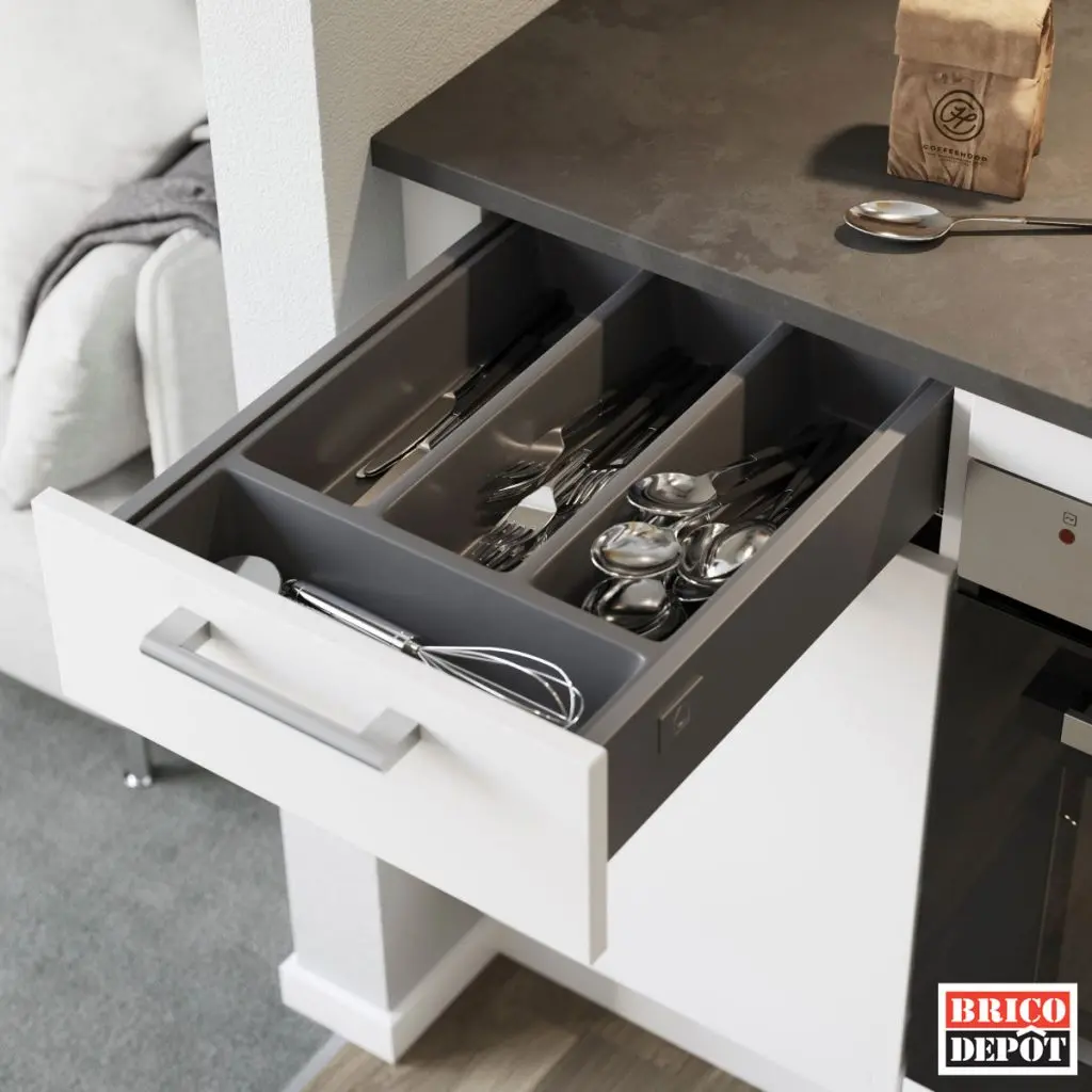 Brico Dépôtiti pune la dispozitie toate accesoriile necesare pentru a compartimenta eficient fiecare sertar sau corp de mobilier si a ordona inclusiv cele mai dificile spatii din bucatarie: dulapurile de colt. Iar partea cea mai buna este ca aceste accesorii sunt gandite sa se potriveasca pentru dimensiunile standard ale mobilierului de bucatarie deci cu siguranta vei gasi elementele potrivite si pentru bucataria ta.