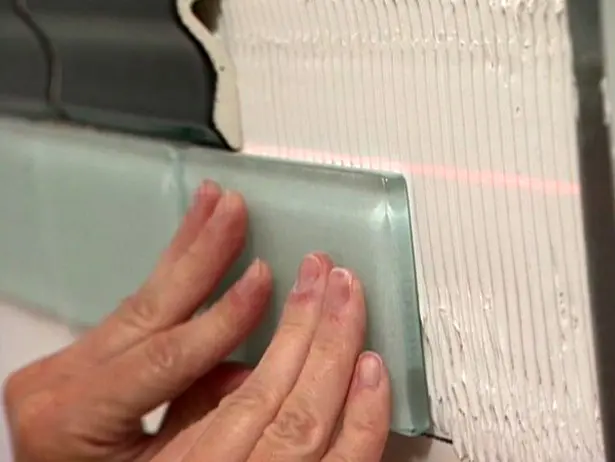 Aplica materialele necesare fixarii gresiei si faiantei, indiferent care sunt optiunile tale pentru o mai buna fixare, dupa care poti incepe sa accentuezi linile dintre piesele de gresie si faianta.