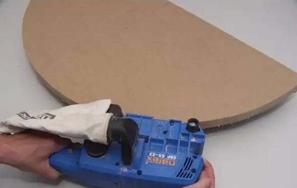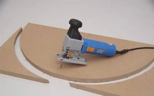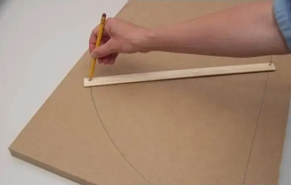Masurati cu ajutorul riglei si dati placajului forma de semicerc;