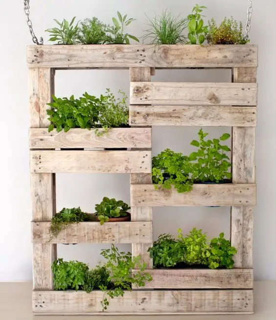 Construirea unei gradini verticale din paleti poate fi mai solicitanta, insa complexitatea ei o face cu adevarat spectaculoasa. Poti alege intre diverse tipuri de panouri de perete pe care sa asezi ghivece sau jardiniere facute din diferite parti ale paletilor.