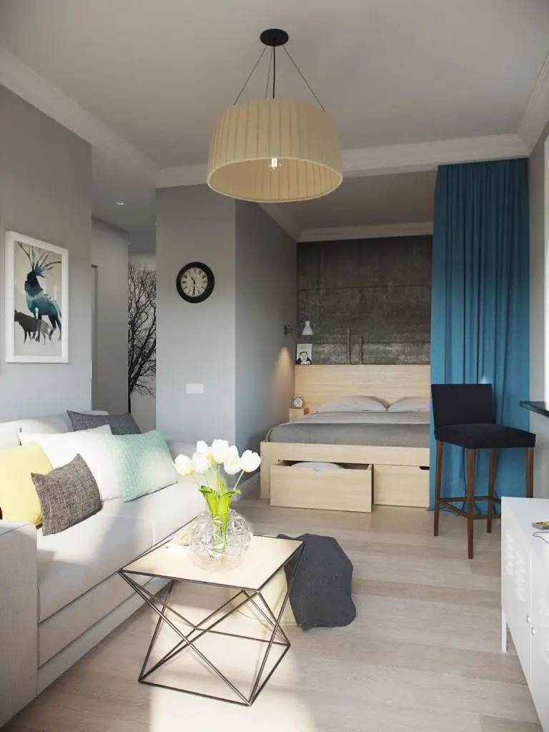 Deschide GaleriaDificultatea intampinata a venit din dorinta cuplului de a avea o zona de dormit. In plus, peretele dintre camera si bucatarie nu se putea elimina, de aici si provocarile ce au survenit in realizarea amenajarii. Cum a iesit? Merita sa arunci o privire pe imagini si sa te inspiri indiferent ca locuiesti intr-un spatiu asemanator sau mai mare. Tot ce vei gasi aici iti va putea fi util.