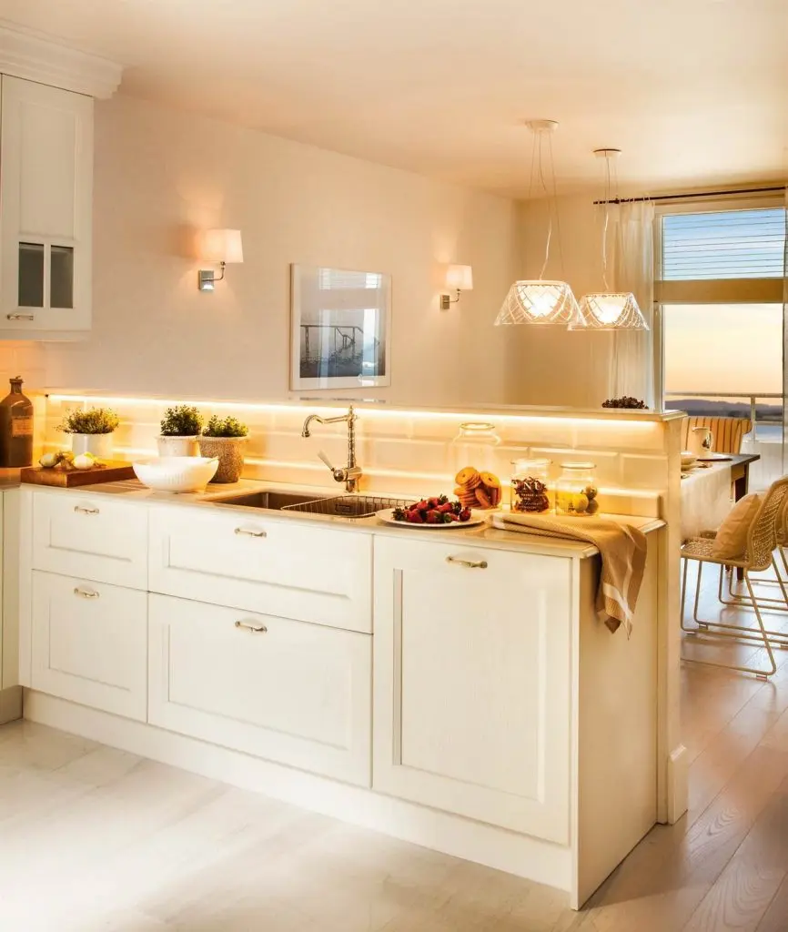 Iluminatul cu benzi L ED. Casele din Romania sufera la capitolul iluminat. Poti schimba asta adaugand lumini de ambient, cum ar fi un lampadar in living sau benzi L ED in bucatarie, de exemplu. Te vor ajuta sa aduci lumina pe zona blatului de lucru (monteaza sub dulapurile de sus si vei avea astfel o lumina mai buna pentru intreaga bucatarie). Un gest mic, dar cu impact mare pentru tine.