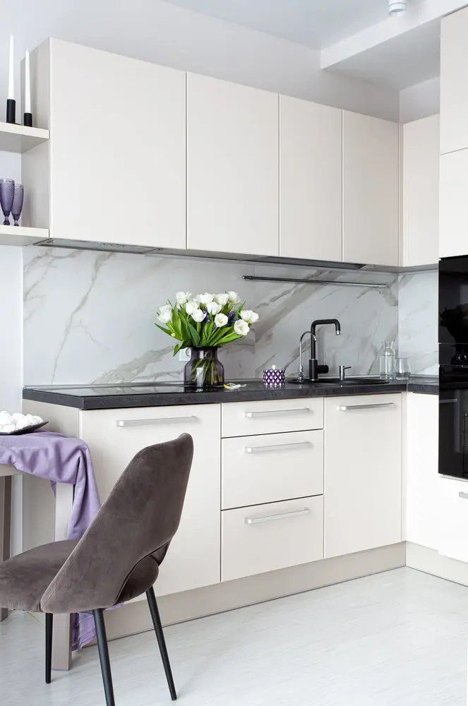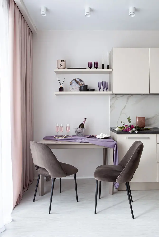 Amenajarea spatiului compact propusa de echipa de arhitecti imbina armonios functionalul cu eleganta. Designerii au reusit cu succes sa mareasca vizual spatiul existent si sa gaseasca solutii de depozitare eficente, fara sacrificii estetice.