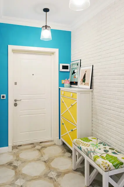 Casa inspira veselie prin culori si luminozitate. Inca de la intrare te intampina un perete-accent cu albastru si decoratiuni ce personalizeaza spatiul intr-un mod placut. Practic, te binedispui inca de la primii pasi facuti la interior.