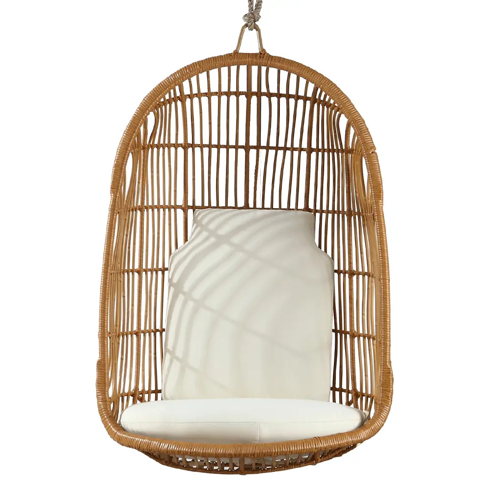 Leagan din imitatie de ratan. Structura sa usoara si modul de prindere creeaza un sentiment de vacanta.