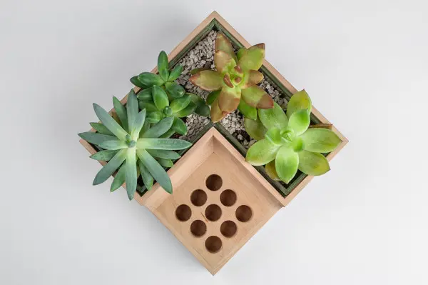 Eco Pot este un ghiveci patrat din lemn, care are in colt un suport cu gauri pentru diverse obiecte de scris, de la creioane, la marker permanent. Acesta este un obiect ideal pentru cei care isi doresc mai mult verde pe birourile lor. Este perfect pentru o amenajare minimalista; cei mai ordonati dintre dumneavoastra, vor aprecia designul practic si eficient al acestui obiect.