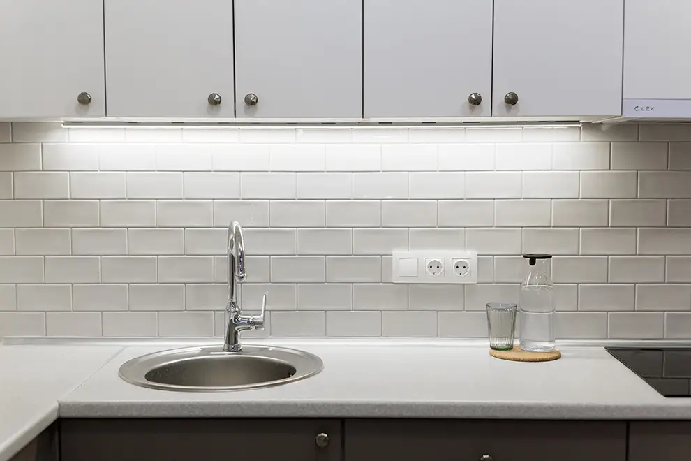 Zona de bucatarie este open space, accesul se face direct din hol. Configuratia spatiului a permis o dispunere pe doua laturi, o parte cu blatul de lucru si zonele principale de depozitare (care merge pana in tavan pentru cele superioare), iar cealalta parte cu electrocasnicele incorporate.