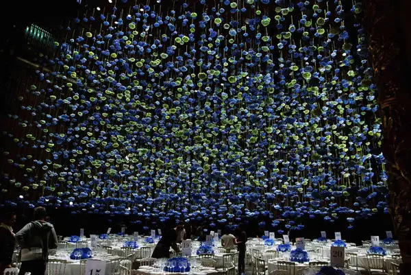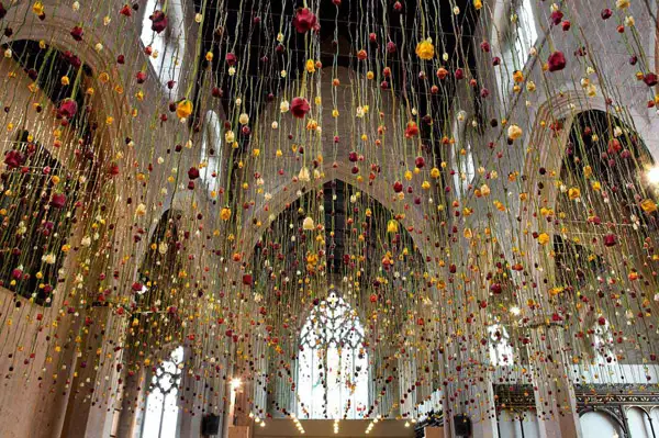 Rebecca Louise Law inalta forma artei cu aranjamentele sublime de flori “plutitoare”. Munca ei consta in sute sau mii de flori, salbatice sau cultivate, suspendate foarte sus de nivelul podelei, pe sarme aproape invizibile. Creatiile ei constau intr-un cadru colorat care invita vizitatorii sa priveasca spre bolta si sa interactioneze intr-o experienta unica ce combina natura cu arhitectura.