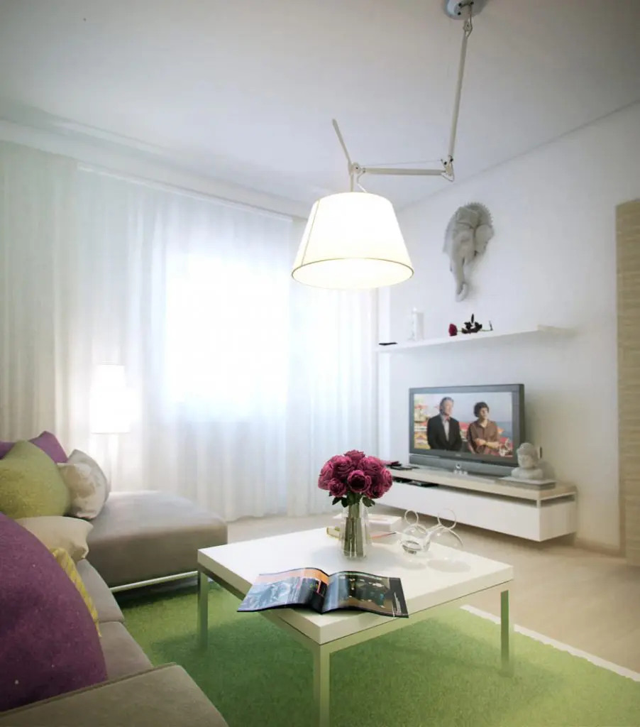 Sa nu uitam cat de important este iluminatul artificial pentru o locuinta mica. Variate lampi si corpuri suspendate asigura o lumina eficienta in aceste incaperi din apartament.