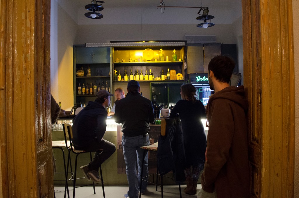 Lokal, sau cum am gasit drumul spre casaIn stanga, am gasit locul de unde pleaca inspiratia. Barul, industrial, cu scaune inalte si rezistente, cu sticle meticulos aranjate pe rafturile invechite.In stanga, am gasit locul de unde pleaca inspiratia. Barul, industrial, cu scaune inalte si rezistente, cu sticle meticulos aranjate pe rafturile invechite.