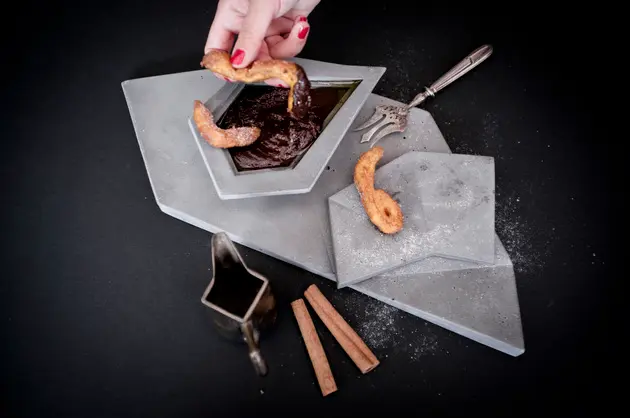Elegant, dinamic si rezistent, betonul este un material reusit pentru crearea unui set de farfurii