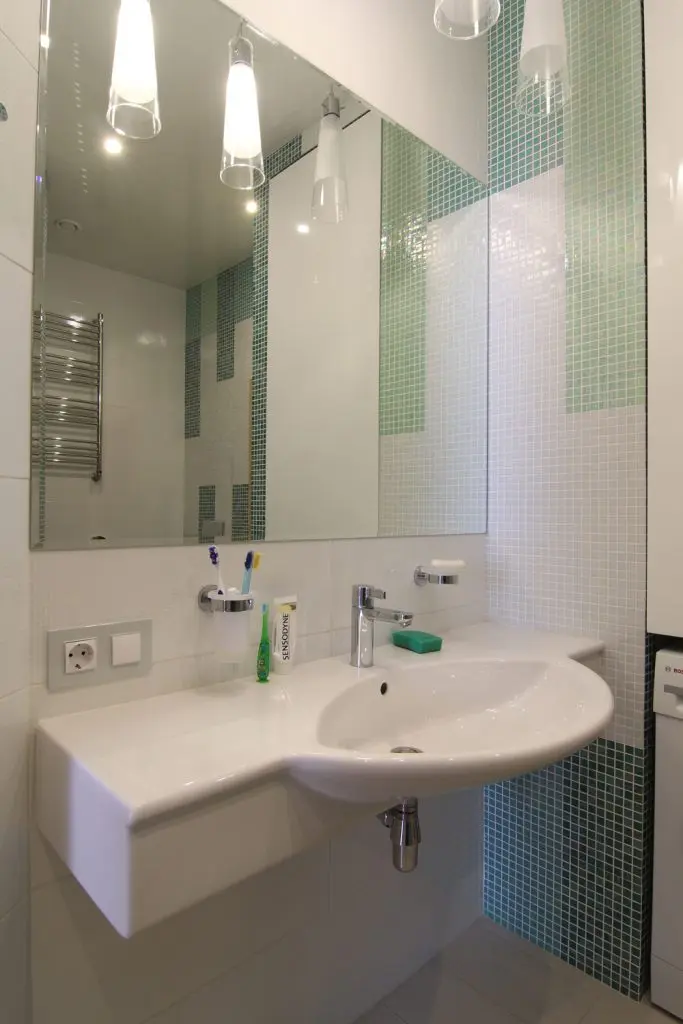 Insertiile de verde crud si albastru marin, dar si autocolante cu motive florale din baie ne duc cu gandul la o casa de vacanta pe malul marii sau al oceanului.