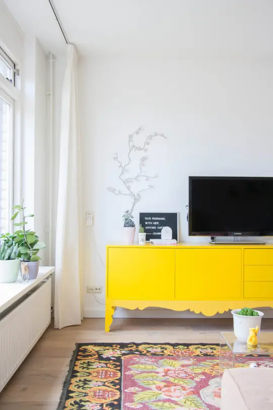 Deschide GaleriaDupa cum putem vedea, casa aflata intr-un stadiu avansat de degradare a primit reconditionarea necesara si in plus, i-a fost oferita propria sensibilitate pe care si-au dorit-o proprietarii. Mobilierul plin de culoare si detalii dau o nota unica acestui living. Printre stilurile scandinav si vintage prezente aici, livingul se bucura si de alte elemente unice speciale precum este covorul colorat in stil etnic, lampa de podea si pernele intr-o multitudine de pattern-uri atragatoare.