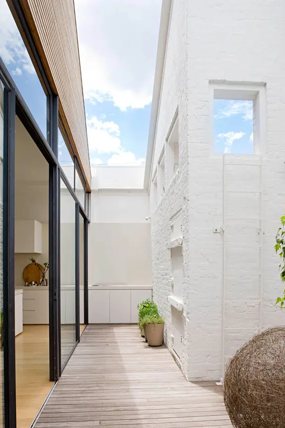 Deschide GaleriaDesi la exterior, arhitectii au decis sa nu intervina asupra aspectului original al cladirii, pastrand caramida rosie originala, usile banale de lemn si geamurile initiale simple, la interior, au lasat imaginatia sa zboare. Ca paleta cromatica au mers pe culorile care nu dau gres niciodata: alb in combinatie cu beige-ul natural al lemnului, accentuat pe alocuri cu detalii in culori primare, puternice.