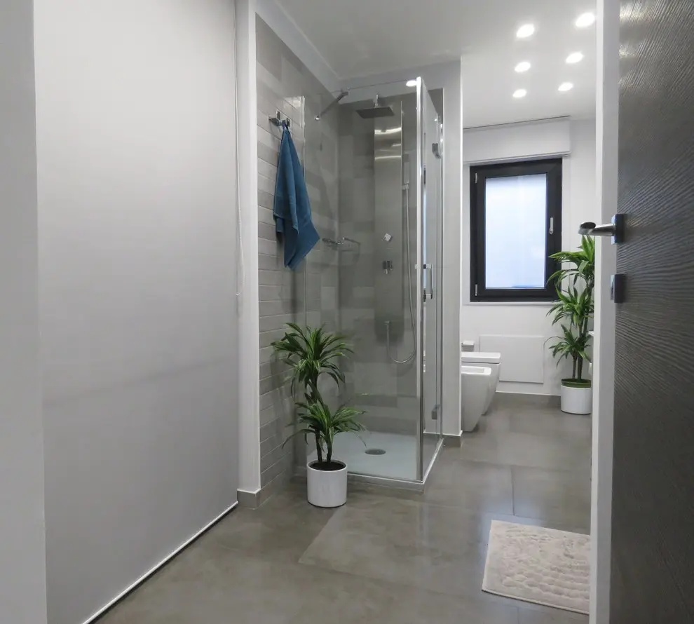 Dar, poate, cea mai mare transformare a fost realizata in baie, o incapere mai spatioasa decat suntem obisnuiti, care asigura loc pentru toaleta si bideu, o cabina de dus si lavoar. Tot aici a fost integrata si masina de spalat rufe.