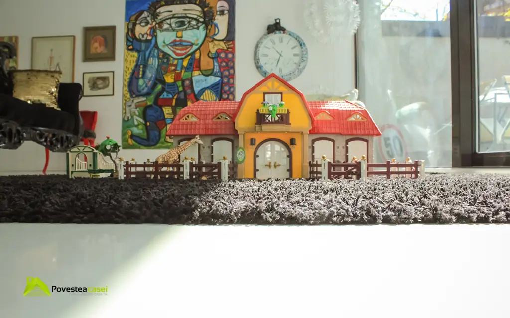 Casuta miniaturala primita in dar de mezina familiei s-a metamorfozat intr-un obiect decorativ, care aduce o nota dulce intregului ansamblu.