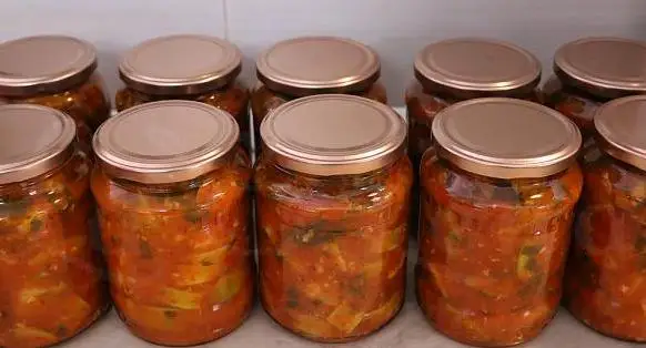 O salată conservată la borcan, cu dovlecei crocanți și un sos bogat de ardei și usturoi. Este o rețetă simplă, de inspirație moldovenească, foarte aromatică și versatilă – ideală servită rece, ca garnitură sau aperitiv, și se păstrează foarte bine în cămară.