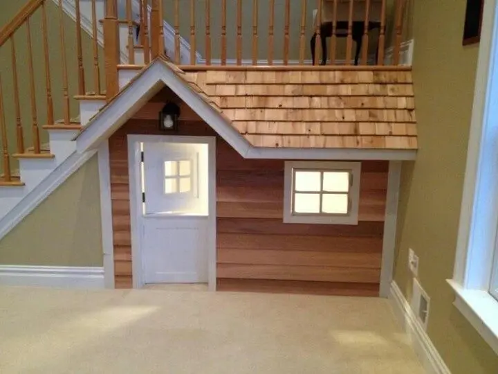 Proiectul este relativ usor de realizat, pentru ca spre deosebire de constructia unei intregi casute, aici aveti deja peretii din interior. Daca anterior, foloseati acest spatiu ca loc de depozitare, pentru a porni proiectul, trebuie sa debarasati zona si ulterior sa-i oferiti un aspect prietenos, plin de culori vesele, eventuale desene prin care cel mic sa se simta confortabil. Folositi stickere pe care sa le lipiti atat in interior cat si in exterior pentru a obtine efectul dorit.