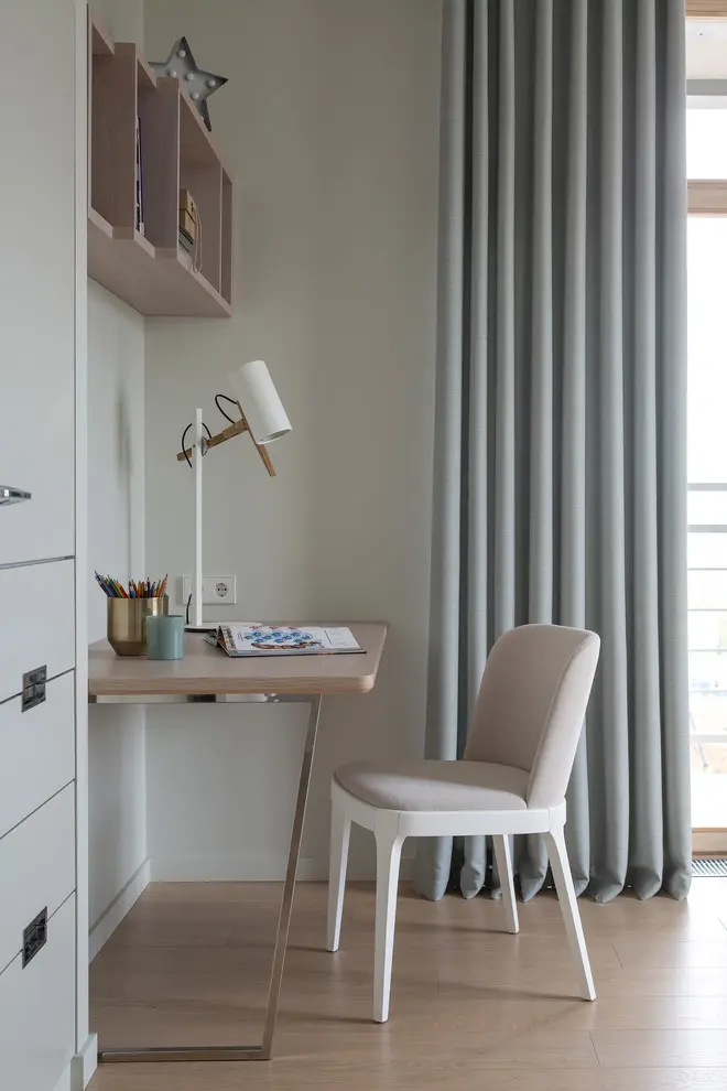 Pentru fiecare copil au fost amenajate camere separate care, desi nu au o suprafata foarte mare, datorita aranjamentului mobilei si a paletei de culori folosita par mai spatioase.