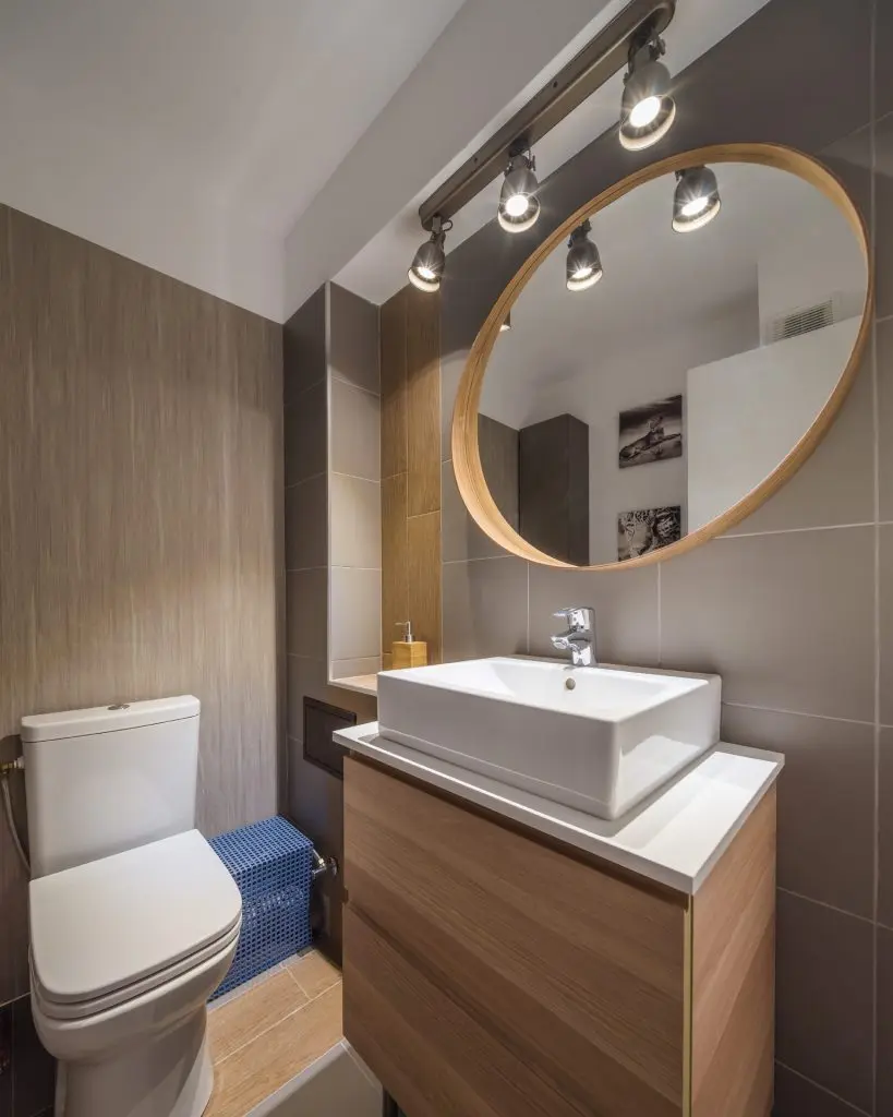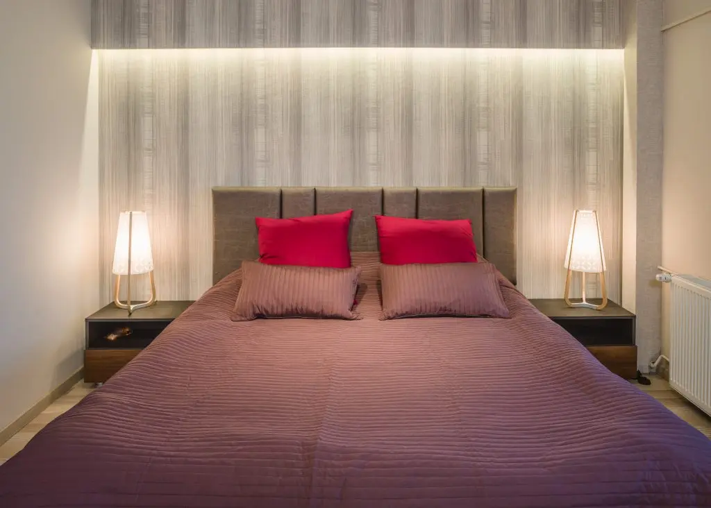 Dormitorul surprinde prin eleganta si caracterul usor glamour. Tapetul din spatele patului precum si scenariul corpurilor de iluminat contureaza un spatiu relaxant si confortabil. Acelasi tip de pardoseala din parchet laminat de la Tarkett, o intalnim si in dormitor, oferind un caracter unitar diferitelor functiuni ale casei. Balconul este folosit ca spatiu de machiaj. In baie, s-a mers pe finisaje cu tonuri neutre pentru un ambient confortabil si placut.
